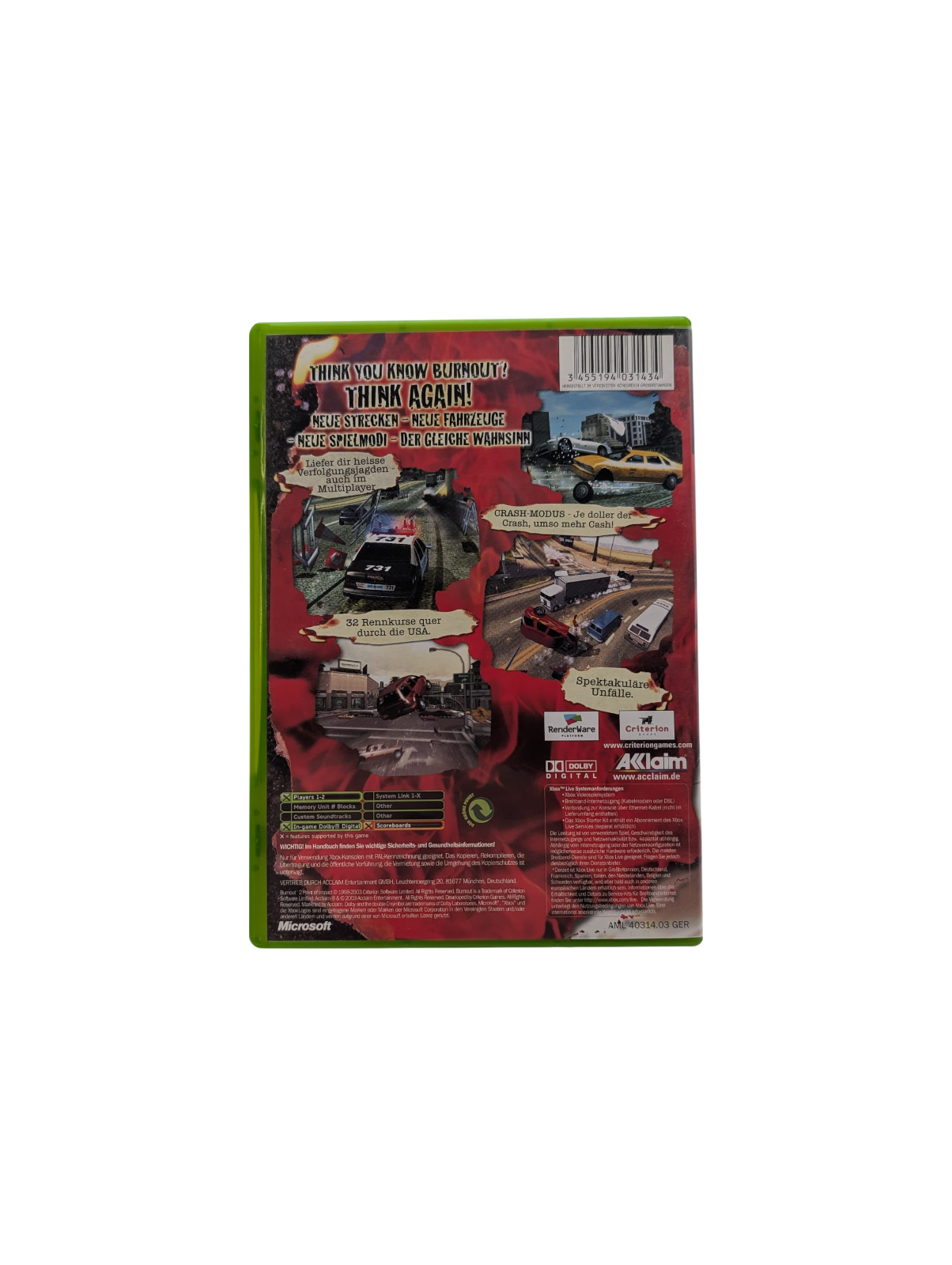 Erlebe mit Burnout 2: Point of Impact rasante Arcade-Rennaction voller spektakulärer Crashs und aufregender Stunts. Fordere deine Gegner heraus, raste durch abwechslungsreiche Strecken und zeige dein Können bei halsbrecherischen Manövern.