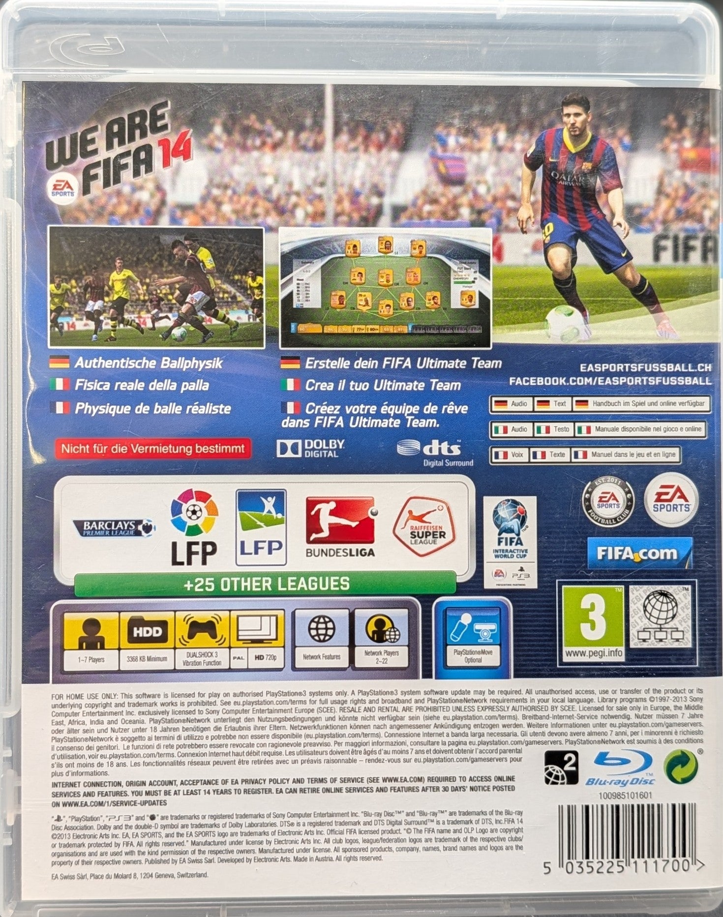 Erlebe mit FIFA 14 auf der PlayStation 3 realistische Fußball-Action mit verbesserten Animationen, präzisem Passspiel und spannender Spielphysik. Ob im Karrieremodus, Online-Duell oder bei Freundschaftsspielen – stelle dein Können unter Beweis und führe dein Lieblingsteam zum Sieg.