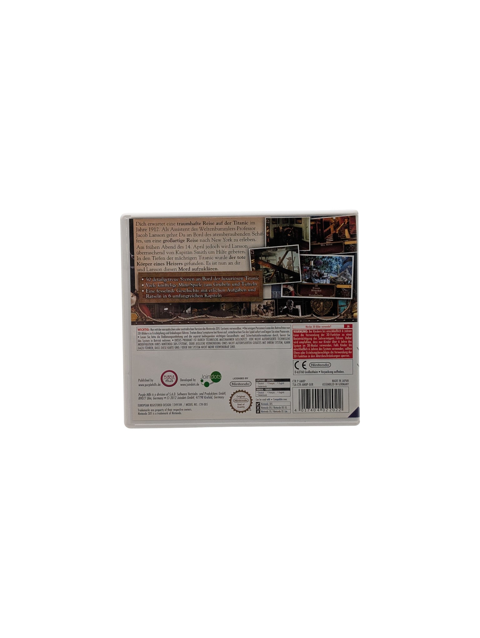 Begib dich auf eine spannende Reise auf der legendären Titanic in Mord auf der Titanic Mystery 2 für den Nintendo 3DS. Löse einen mysteriösen Mordfall, sammle Hinweise und entwirre ein geheimnisvolles Netz aus Intrigen und Geheimnissen. Ein fesselndes Detektiv-Abenteuer, das dich in die Atmosphäre des berühmtesten Passagierschiffs entführt.