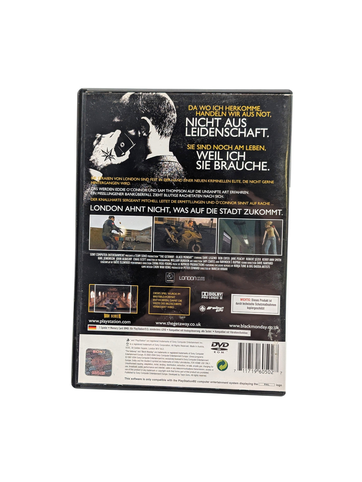Tauche ein in die düstere Unterwelt Londons: In „The Getaway: Black Monday“ übernimmst du die Rolle von drei unterschiedlichen Charakteren, die in eine brutale Geschichte aus Verbrechen, Verrat und Rache verwickelt sind. Mit filmreifer Inszenierung, authentischer Sprachausgabe und einer frei begehbaren Londoner Spielwelt setzt das Spiel neue Maßstäbe für Action-Adventures auf der PS2.
