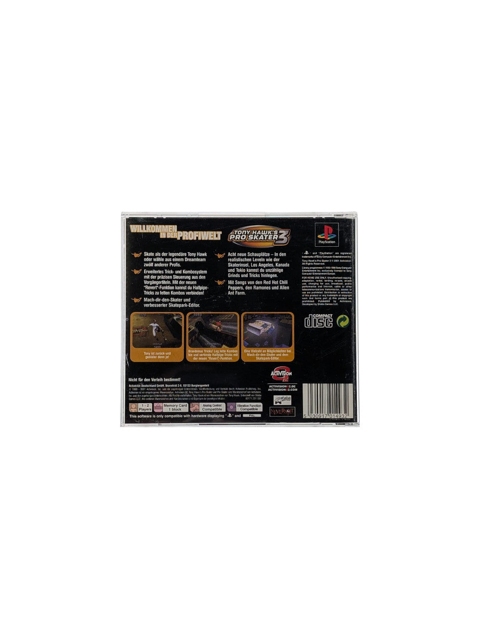 Erlebe mit Tony Hawk's Pro Skater 3 auf der PlayStation 1 atemberaubende Skateboard-Action! Meistere coole Tricks, fahre durch abwechslungsreiche Skateparks und stelle dich Herausforderungen in verschiedenen Spielmodi. Ein Must-Have für Fans von Extremsport und Actionspielen.