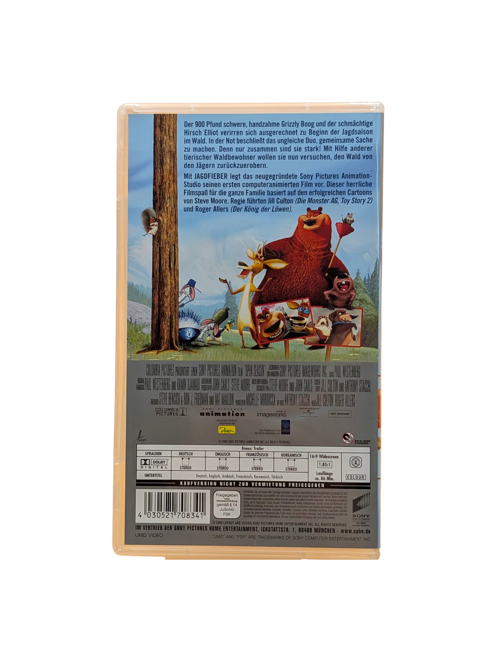 Jagdfieber als UMD-Video für die Sony PSP. Lustiger Animationsfilm über den verwöhnten Grizzlybären Boog, der plötzlich in der Wildnis landet und gemeinsam mit dem schlauen Hirsch Elliot ein turbulentes Abenteuer erlebt. Humorvoll, chaotisch und ideal für die ganze Familie.