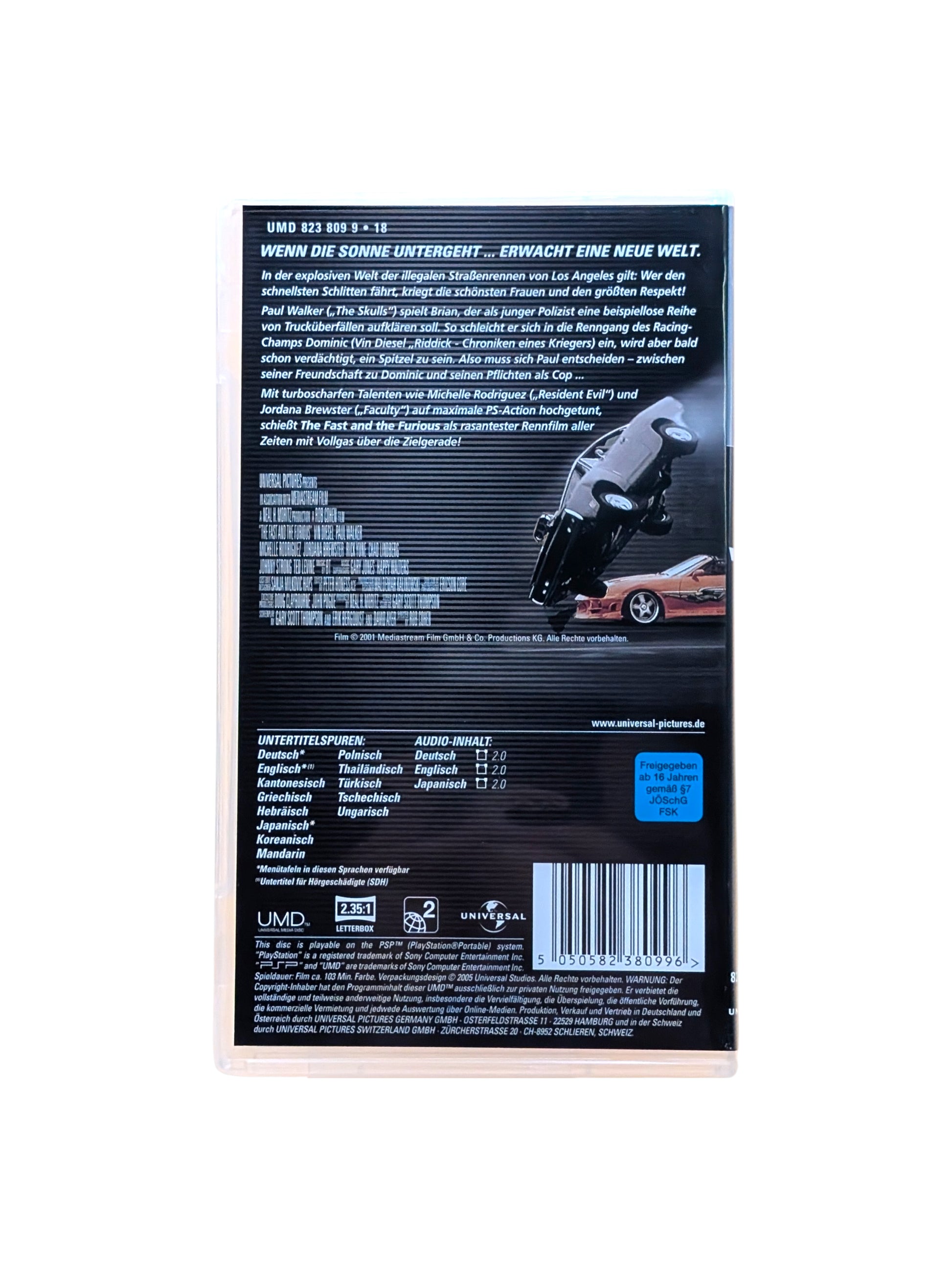 The Fast and the Furious als UMD Video für die Sony PSP. Illegale Straßenrennen, getunte Sportwagen und Hochgeschwindigkeits-Action mit Vin Diesel und Paul Walker. Der Film, mit dem die legendäre Fast-&-Furious-Reihe begann.